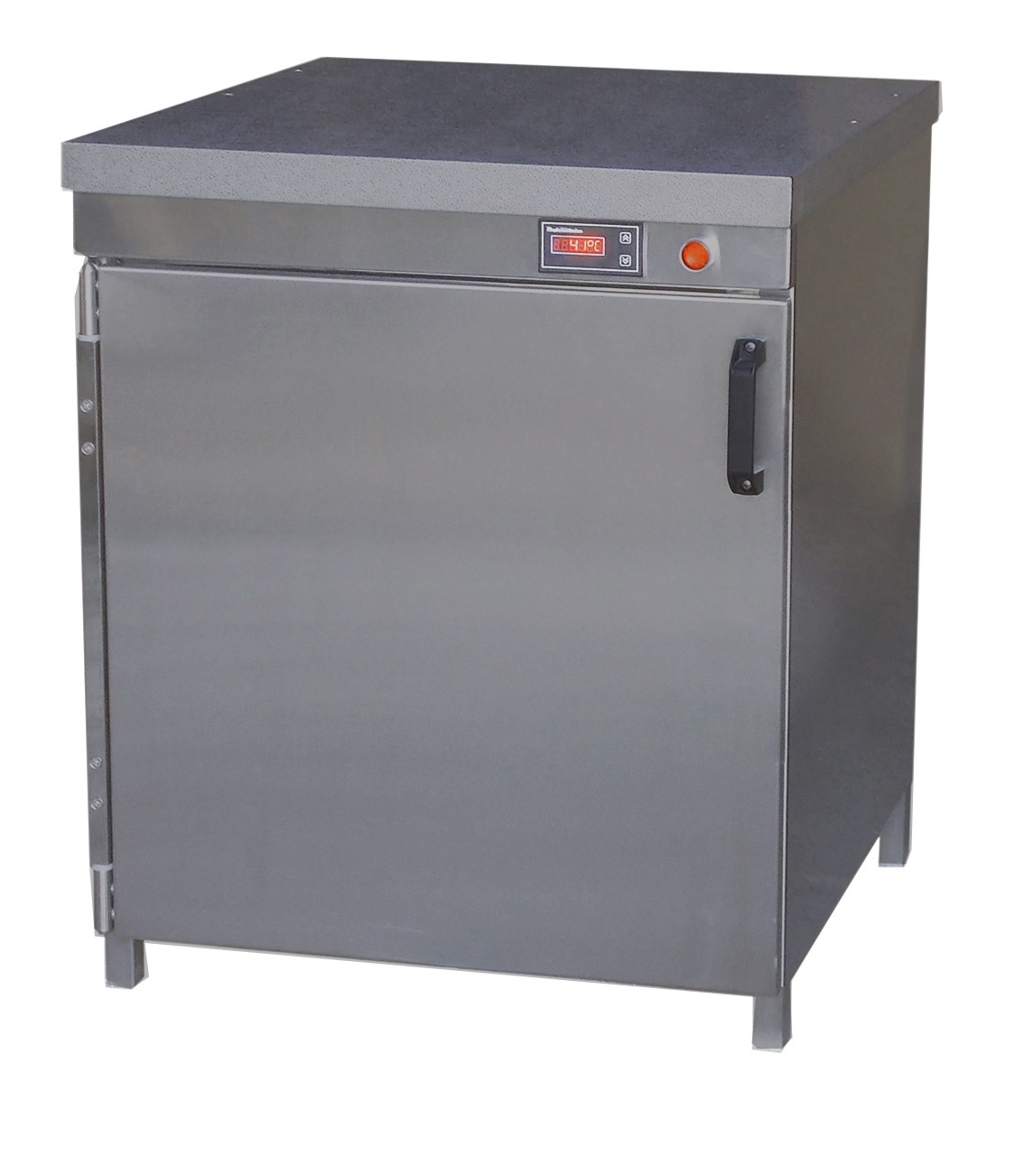 Термошкаф изготовлен из нержавеющей стали. Выполняет функцию поддержания заданной температуры внутри камеры хранения лотков с готовыми фанго-парафиновыми смесями от +20 оС до +55 оС.