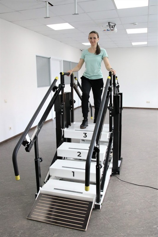 Тренажер в плоском положении (при нулевой высоте ступеней) используется как параллельные брусья, традиционно применяющиеся в медицинской реабилитации.